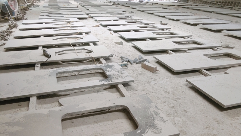 This is the dry area for countertop production. First workers will review the shop drawings carefully, check the slab size then mark the countertops where to do sink cutout, faucet holes, scres holes etc. |
