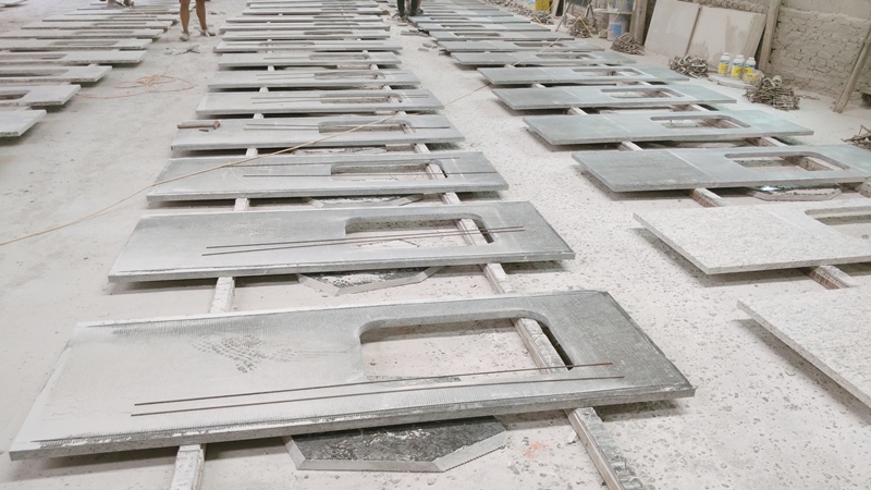 This is the steel reinforcement in backside of countertops. If no steel reinforcements, there will be more chances that countertops break in sink cutout position during production, transportation and installation. |